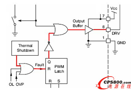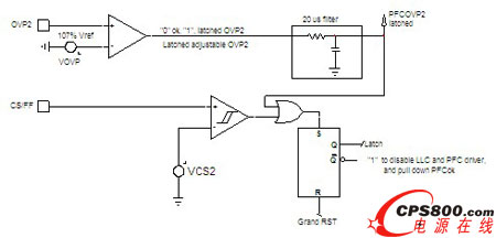 用于上述電源設計的現(xiàn)有方案存在的最大問題是元器件數(shù)量太多,首先必須要有帶主電源輸入欠壓(LBO)保護功能的PFC控制器,還要有帶輸入欠壓(BO)保護及閂鎖功能的LLC控制器;用于處理“功率良好”(PG)信號的比較器,以及用于感測的額外電路也必不可少。此外,為了實現(xiàn)次級端過壓保護(OVP),需要可控硅整流器(SCR)、比較器及感測電路;為了提供LLC短路保護(SCP)并兼顧PFC工作異常狀況,還需要其他一些元件。如果能在一個單芯片中結(jié)合所有功能,實現(xiàn)一種組合控制器就可以使這些問題迎刃而解。
