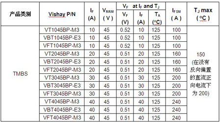 日前,Vishay Intertechnology, Inc.宣布,推出12款采用3種功率封裝、具有10A~40A額定電流范圍的新型45V器件---V(B,F)T1045BP、V(B,F)T2045BP、V(B,F)T3045BP和V(B,F)T4045BP,擴(kuò)充其TMBS® Trench MOS勢壘肖特基整流器。這些整流器在20A電流下具有0.51V的極低正向壓降,適合在太陽能電池接線盒中用作起保護(hù)作用的旁路二極管。