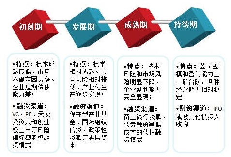 戰略性新興產業在不同的發展階段對應的融資模式也不相同。在產業發展初創期,技術成熟度較低、市場不確定因素多,企業投資性現金流出多、經營性現金流入少、企業短期償債能力差,如果選擇銀行貸款等債權融資會提高企業財務杠桿比例,會增加企業的經營負擔,進而加大債權人資金風險。因此,處于初創期的戰略性新興產業企業,建議去尋找能與其共擔風險、共享未來收益的投資合伙人,選擇VC、天使投資等風險偏好型的股權融資模式。以互聯網企業為例,其在初創期由于缺乏成熟的商業模式,往往不能盈利,因此企業的償債能力較差,很難得到銀行貸款等債權性資本。團購網站拉手網已完成三輪融資,全部來自于風險投資機構,使得企業在眾多的團購網站中能夠生存下來并有機會沖擊納斯達克。