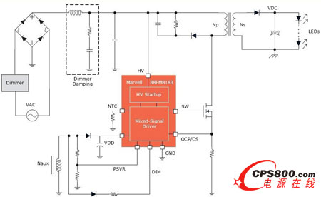 消費者用LED節能燈取代白熾燈等傳統照明解決方案的同時,也希望得到同樣或更好的照明體驗。不幸的是,他們常常發現LED燈在調光能力上有問題,因此覺得LED燈幾乎不能調光或調光時會閃爍。很多LED燈與家中已安裝的壁式調光器也不兼容。Marvell最新的88EM8183深度調光單級交流/直流LED驅動器IC為OEM廠商和ODM廠商提供了兼容性最廣泛的調光解決方案,該IC與全球市場上絕大多數調光器都兼容,而且提供卓越的光輸出質量,可提高消費者的滿意度,減少退貨。