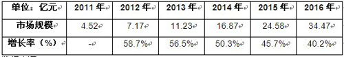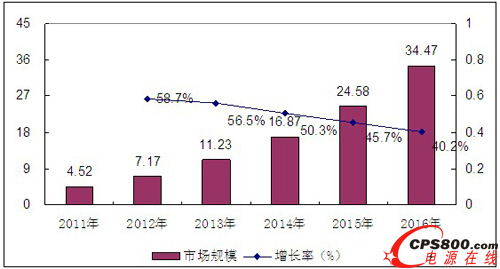 圖1 2011-2016年中國電動汽車充電樁市場規(guī)模