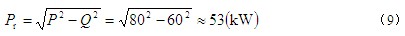 所以在全匹配的條件下,負載功率因數為0.8的100kVA UPS能將80kW的有功功率和60kvar的無功功率全部輸送給負載。即在UPS的負載功率因數與負載的輸入功率因數完全匹配時,負載上得到的功率就是: