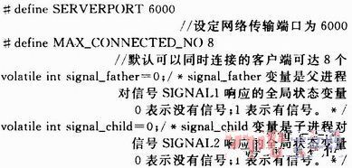 在進行網絡通信之前,先設定網絡端口最大允許接入的客戶端數、父進程和子進程設定的2個狀態變量。