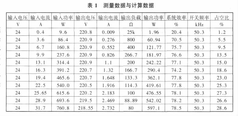 實驗結果表面,輸出電壓穩定在220V,紋波電壓較小。最大輸出功率能達到近600W,系統效率基本穩定在80%,達到預期效果。其中,由于IGBT效率損耗較大導致系統效率偏低,考慮如果采用損耗較小的MOSFET,系統效率會至少上升10%~15%.
