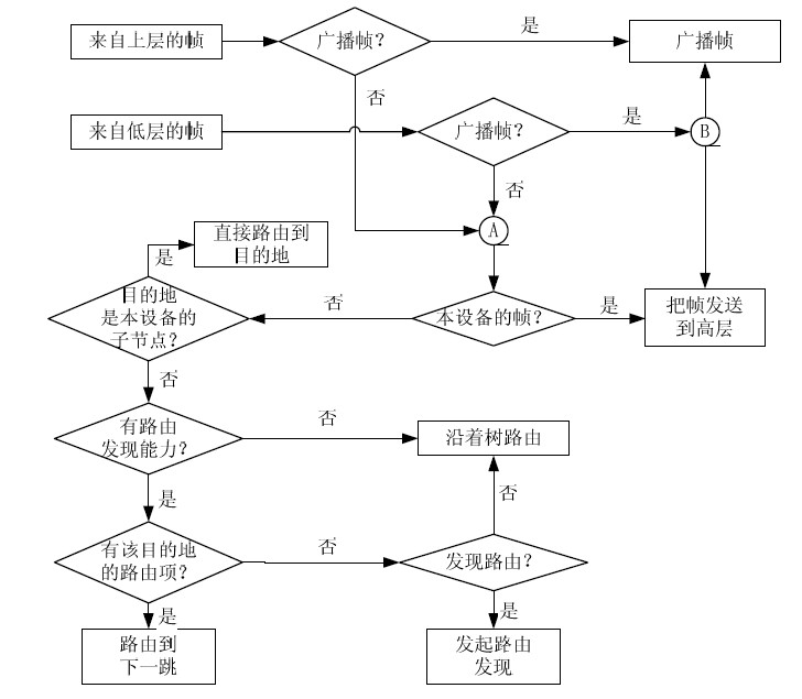 路由器節點在系統中的作用是路由選擇和數據轉發。ZigBee 設備有兩種類型的地址。一種是64位IEEE 地址(也稱為MAC 地址或擴展地址);另一種是16 位網絡地址(也稱為邏輯地址或短地址)。