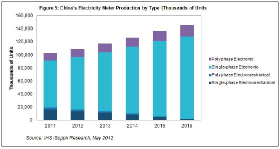 中國去年出口了大約2470萬個電表,預(yù)計2012年該數(shù)字將上升到2830萬個左右。IHS iSuppli公司預(yù)測,由于今年電表招標(biāo)購買數(shù)量將會大幅減少,出口市場的競爭可能進(jìn)一步加劇。