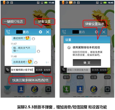 通常狀況下,用戶需要實時接收到新浪私信的辦法,主要靠是安裝新浪微博客戶端,但是基于數據網絡,總是不可避免遭遇提醒延遲。面對這個問題,用戶通常抱怨客戶端不穩定,而客戶端提供商則可稱是與手機兼容性問題或者干脆把責任推到不穩定的無線網絡上。但是,顯然用戶的使用感受下降了一個層級。翼聊的免費"翼推送"短信提醒,為解決這類問題,提供了更優的選擇,這也是翼聊作為運營商背景的社交溝通軟件所獨具的優勢所在。