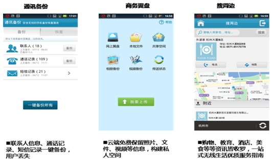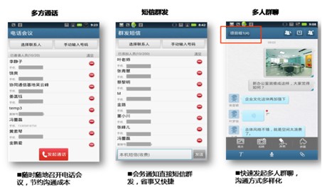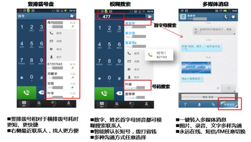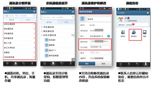 此次發(fā)布的"協(xié)同通信"以云通信錄為核心,用戶登錄客戶端即可獲得總機(jī)云通信錄、單位、個(gè)人通訊錄,并可隨時(shí)隨地查看和自助管理,有效提升人脈關(guān)系管理能力;同時(shí)在云通訊錄基礎(chǔ)上,整合了多媒體消息、短信、多方通話等溝通能力,以及通信備份、翼盤云存儲(chǔ)、搜周邊等商務(wù)功能,有效提升溝通效率。