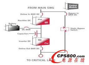 使用雙轉(zhuǎn)換UPS,電源要從交流整流到直流,再從直流逆變到交流,才能確保輸出端完整的正弦波及頻率保護功能,以及保護負(fù)載免受七種電力干擾的影響。這個方法既超出了現(xiàn)代IT設(shè)備的電源需求,又消耗了大量的能源。