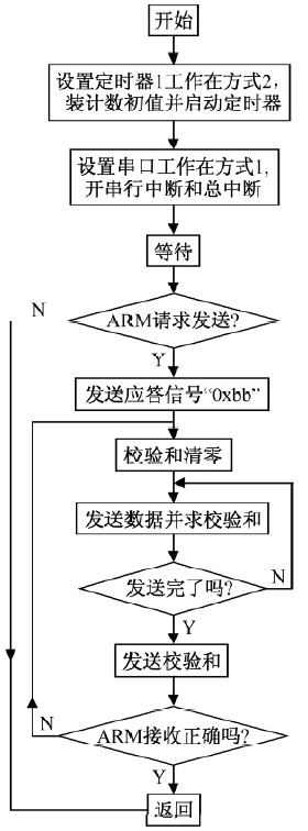 ( 1) 波特率為9600 bit /s,幀格式為1 - 8 - N - 1( 1 位起始位,8位數據位,無奇偶校驗,1位停止位) ;( 2) 由于上位機ARM 的速度遠遠高于下位機單片機的速度,所以采用上位機主動聯絡,下位機等待的方式。在數據傳送前ARM 先發送聯絡信號/0xaa,單片機收到后回答一個/0xbb,表示可以發送,否則繼續聯絡;( 3) 單片機端可以有中斷和查詢方式收發串口數據。本文采用中斷方式;( 4) ARM 處理器s3c2440 采用UART1 和單片機通信,UART0 則作為s3c2440 終端控制臺。