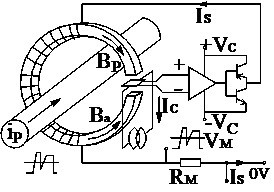 霍爾電流傳感器基于磁平衡式霍爾原理,即閉環原理,當原邊電流IP產生的磁通通過高品質磁芯集中在磁路中,霍爾元件固定在氣隙中檢測磁通,通過繞在磁芯上的多匝線圈輸出反向的補償電流,用于抵消原邊IP產生的磁通,使得磁路中磁通始終保持為零。經過特殊電路的處理,傳感器的輸出端能夠輸出精確反映原邊電流的電流變化。