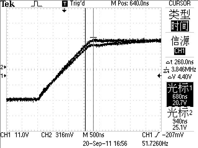經過測試其響應時間和輸出信號,得出其相關曲線圖,如下: