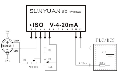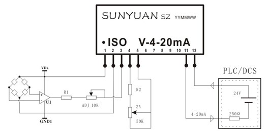 順源ISO V-4-20mA電橋檢測(cè)電路電壓信號(hào)隔離配送典型應(yīng)用