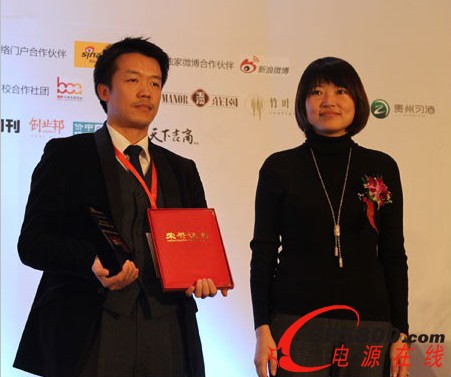 漢能董事總經理董征(右)為宏圖三胞熊健頒獎