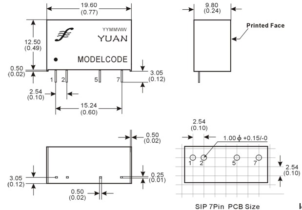 1、低成本、小體積Sip 7Pin阻燃封裝,抗浪涌4KVAC(6KVDC)高隔離,輸出功率 0.2W/0.5W/1W/2W。