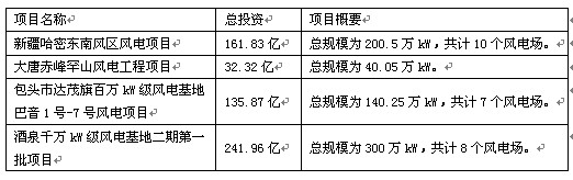 酒泉千萬kW級風電基地二期第一批項目 241.96億 總規模為300萬kW,共計8個風電場。