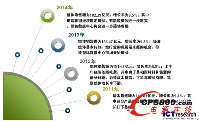 圖1 2011-2014年中國數據中心基礎設施產品市場銷售額預測
