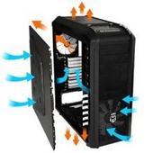 當然,有的玩家會說:我們可以打開設備側板,再配上一個小電扇對著機箱內部狂吹,解決空氣流動問題。這種方法雖然達到了空氣流通的目的,效果也提升明顯,但隨之會帶來一系列的問題:大量灰塵進入設備,日久天長容易損壞板卡等精密配件;配件產生的輻射會毫無阻擋的危害人體健康;風扇+“無蓋”箱體產生的隆隆噪音讓人“震耳欲聾”。