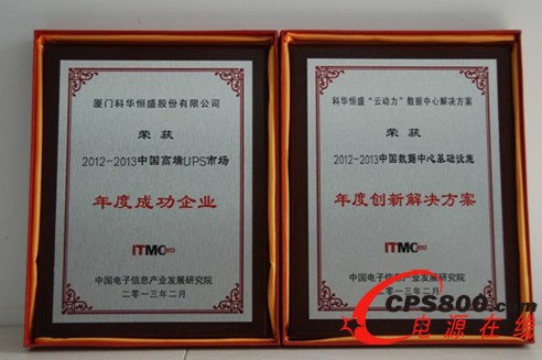 2013年2月26日,作為一年一度中國IT市場高規格、深具影響力的重要活動,由中國電子信息產業發展研究院主辦(工信部直屬機構),賽迪顧問股份有限公司承辦的“2013中國IT市場年會暨新一代信息技術產業大會”在北京勝利舉行。科華恒盛應邀出席了此次盛會,并憑借其在高端UPS領域卓越的品牌影響力和旗下“云動力”數據中心完善的解決方案以及在實際應用中的出色表現,一舉獲得“2012-2013中國高端UPS市場年度成功企業”和“2012-2013中國數據中心基礎設施年度創新解決方案”兩項殊榮。