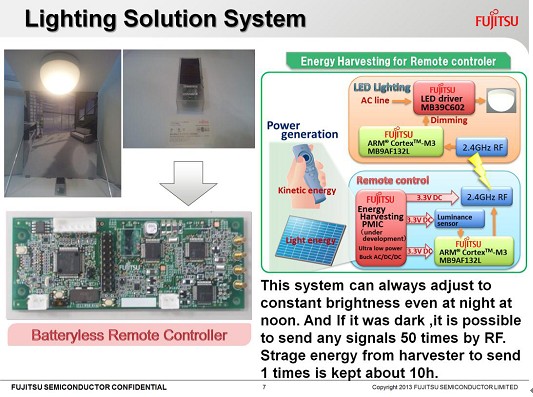 富士通半導體此次重點展示了其最新推出的在微光條件下也可以實現97%轉換效率的光環境發電PMIC,并且此電源管理IC還可以實現低至0.35V的超低電壓啟動。這些技術上的突破使得以往處于概念階段的“無電池”、“半永久”應用場景即將成為現實,并且為綠色節能應用提供了更廣闊的想象空間。