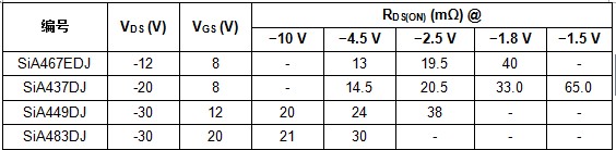 對于電源管理中的負載和電池開關,以及智能手機、平板電腦、移動計算設備、硬盤驅動器和固態(tài)驅動的同步降壓轉換應用里的控制開關,-12 V SiA467EDJ提供了13mΩ(-4.5V)的極低導通電阻。-20V SiA437DJ的導通電阻為14.5mΩ(-4.5V),-30V SiA449DJ和SiA483DJ的導通電阻分別只有20mΩ(-10V)和21mΩ(-10V)。另外,SiA437DJ和SiA467EDJ的電流等級高達30A,承受很大的涌入電流,可用于負載開關。