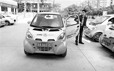 10月23日,浙江省杭州市,在杭州古蕩科技園里,顧客準備歸還行駛回來的“微公交”純電動汽車。
