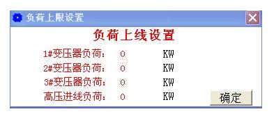 負(fù)荷上限設(shè)置 :可以為高壓進(jìn)線負(fù)荷、各變壓器負(fù)荷分別設(shè)置上限,當(dāng)實(shí)時數(shù)據(jù)超過上限,該數(shù)據(jù)有黑色變成紅色,并且在實(shí)時報警和歷史報警中都留下記錄。如圖