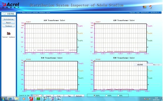體育場的主要用電負(fù)荷為照明和應(yīng)急照明,約占到總負(fù)載的70%,其中以金鹵燈為主的場地照明占到照明負(fù)荷的60%。除照明外最大的負(fù)荷是電子大屏。援贊比亞恩多拉體育場電力監(jiān)控系統(tǒng)為Acrel-2000型。本系統(tǒng)涉及回路共112個(gè),配電柜上安裝的儀表為上海安科瑞ACR系列及PZ系列多功能電力儀表。