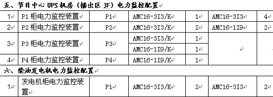 根據上海東方電視臺原有配電系統的現有情況和用戶需求分析,確定需要改造的配電回路,并進行合理的儀表選型,如下表所示(部分):