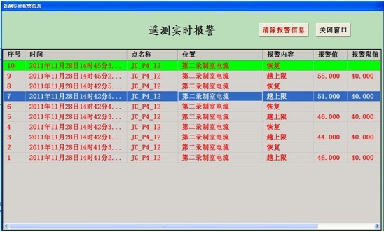 UPS變電所配出回路都為單項回路,只需要采集單項電流參數,電流參數的可查詢時間間隔需小于5分鐘,各回路要求能夠獨立設置電流上限報警參數,當某個回路電流越限時主機要彈出報警窗口顯示報警回路名稱、報警類型、報警數值等信息,主機的音箱也要發(fā)出報警聲音,并且報警聲音可以人為設置打開或關閉;對于報警事件具有存儲、查詢和打印的功能,至少可以查詢2年以內的報警記錄。