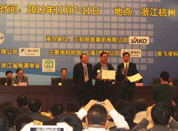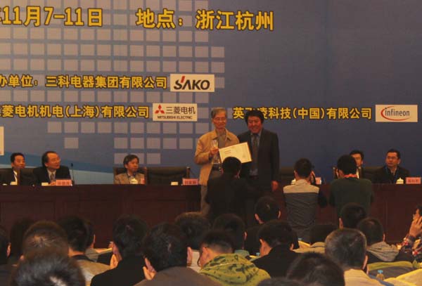 第二屆中國電源學會科學技術(shù)獎頒獎儀式,獲獎?wù)呱吓_領(lǐng)獎(1)
