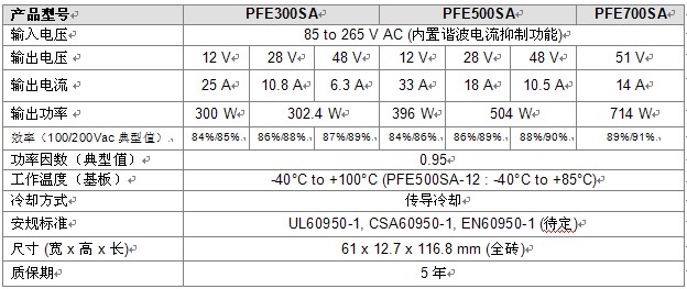 TDK公司宣布TDK-Lambda品牌為提高效率而設計的PFE-SA系列AC/DC功率模塊研發(fā)成功,新產品系列滿足不同客戶需求,適用于需要水冷,完全封閉或無風扇結構的戶外設備,或適合使用傳導冷卻的具有高表貼密度的緊湊型設備。TDK-Lambda集團從2013年10月10號開始接受從PFE500SA系列的訂單。