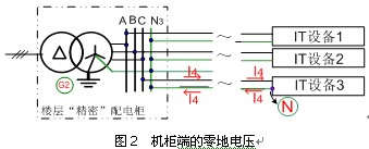 3、 樓層配電柜輸出零地電壓-U N3-G但是,對于IT負載最為“致命”的IT負載機柜端的零地電壓-U N-G往往被忽視。