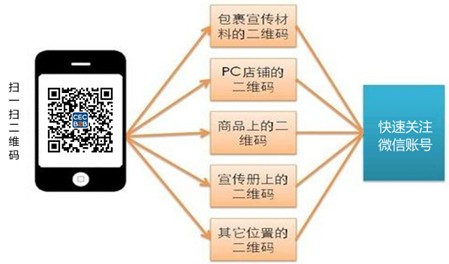 任何用戶只要掃一掃二維碼關注自己微信公眾號,即成為自己的潛在客戶;