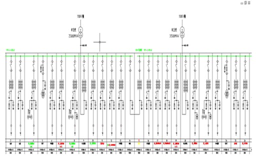 陜西某卷煙廠的供電由供電局引兩路110kV供電線路至總降變電所,通過25000MVA的1#主變和31500MVA的2#主變降壓至10kV并配出到廠區各個生產線配電室。如今生產線投產,供電線路正常運作,1#主變未投,靠2#主變為整條線的生產供電。