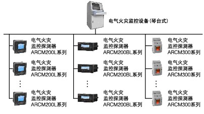 其基本原理是,當電氣設備中的電流、溫度等參數發生異常或突變時,終端探測頭(如剩余電流互感器、溫度傳感器等)利用電磁場感應原理、溫度效應的變化對該信息進行采集,并輸送到監控探測器里,經放大、A/D轉換、CPU對變化的幅值進行分析、判斷,并與報警設定值進行比較,一旦超出設定值則發出報警信號,同時也輸送到監控設備中,再經監控設備進一步識別、判定,當確認可能會發生火災時,監控主機發出火災報警信號,點亮報警指示燈,發出報警音響,同時在液晶顯示屏上顯示火災報警等信息。值班人員則根據以上顯示的信息,迅速到事故現場進行檢查處理,并將報警信息發送到集中控制臺。