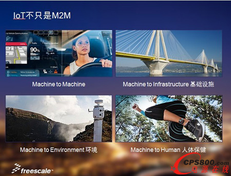不同的人有著不同的物聯網定義,大家較為熟悉的可能是以手機或其他智能設備為中心,控制家中的家電、插座以及供暖、空調等設備并提供個性化服務的智能家居模式或者其他機器與機器通信控制的形態模式,但顯然,在飛思卡爾眼中,物聯網已經不僅僅是M2M(機器對機器的通信)。