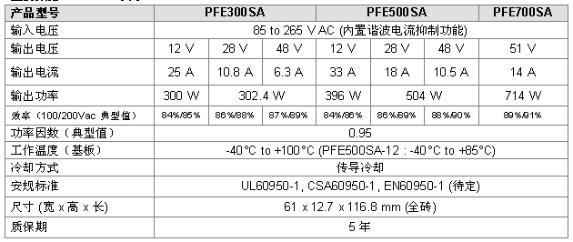 TDK公司宣布TDK-Lambda品牌為提高效率而設計的PFE-SA系列AC/DC功率模塊研發成功,新產品系列滿足不同客戶需求,適用于需要水冷,完全封閉或無風扇結構的戶外設備,或適合使用傳導冷卻的具有高表貼密度的緊湊型設備。TDK-Lambda集團從2013年10月10號開始接受從PFE500SA系列的訂單。