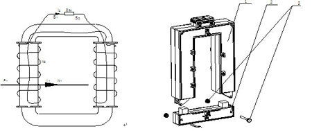 1-開口電流互感器的上體,2-開口電流互感器的下體,3-安裝螺絲、螺母