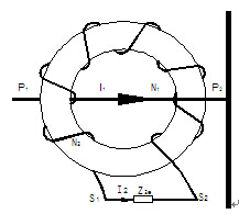 電流互感器的工作原理如圖1所示,電流互感器的一次繞組串聯在被測線路中,I1為線路電流即電流互感器的一次電流,N1為電流互感器的一次匝數,I2電流互感器二次電流(通常為5A、1A),N2為電流互感器的二次匝數,Z2e為二次回路設備及連接導線阻抗。當一次電流從電流互感器P1端流進,P2端出,在二次Z2e接通的情況下,由電磁感應原理,電流互感器二次繞組有電流I2從S1流過,經Z2e至S2,形成閉合回路。由此可得電流在理想狀態下I1×N1=I2×N2,所以有I1/I2=N1/N2=K,K為電流互感器的變比。