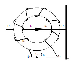 電流互感器的工作原理如圖1所示,電流互感器的一次繞組串聯(lián)在被測線路中,I1為線路電流即電流互感器的一次電流,N1為電流互感器的一次匝數(shù),I2電流互感器二次電流(通常為5A、1A),N2為電流互感器的二次匝數(shù),Z2e為二次回路設備及連接導線阻抗。當一次電流從電流互感器P1端流進,P2端出,在二次Z2e接通的情況下,由電磁感應原理,電流互感器二次繞組有電流I2從S1流過,經(jīng)Z2e至S2,形成閉合回路。由此可得電流在理想狀態(tài)下I1×N1=I2×N2,所以有I1/I2=N1/N2=K,K為電流互感器的變比。