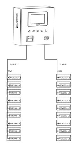 周口骨科醫院現場有剩余電流式儀表18只ARCM200L-J8,安裝于地下配電室的配電柜中,每塊儀表對接8個剩余電流互感器。現場儀表采用總線方式接至消控中心的Acrel-6000B壁掛式電氣火災監控系統。