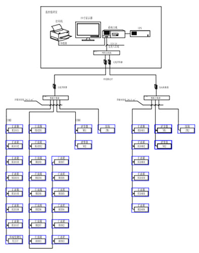 通訊示意圖為拓撲圖,顯示系統與儀表的通訊是否正常。通過界面模塊顏色的變化來反映整個系統各個監控點位的運行狀態。界面如圖3所示。