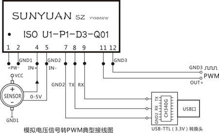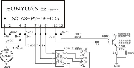 本次研發的新產品: ISO U(A)-P-D-Q系列產品是順源新開發的業界領先技術小體積(SIP12 Pin)低成本可編程控制型隔離變送器。可以將傳感器、儀器儀表、變送器輸出的模擬信號隔離放大、AD轉換為PWM方波信號,并實現脈沖頻率控制可編程輸出。傳感器、變送器、儀器儀表及控制設備嵌入安裝該IC后能立即與PC機、PLC/DCS組成以太網/物聯網、RS232總線網絡并聯網通訊,將現場傳統控制設備升級為工控智能化設備,方便用戶遠程監控。