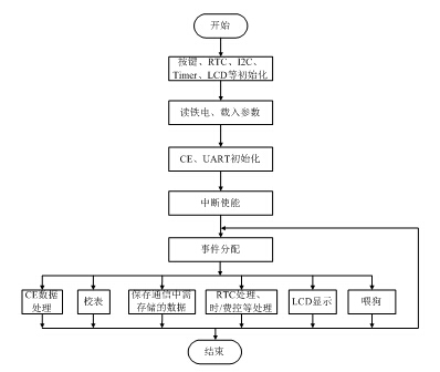主程序作時間片及事件的觸發條件來管理各個不同的功能模塊。主程序軟件流程如圖2所示。