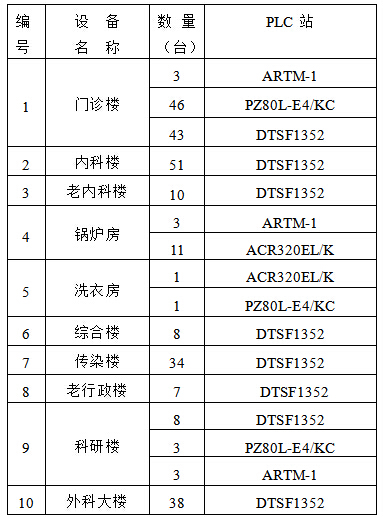 本監控系統主要實現云南省昆明市第十寧夏醫科大學附屬醫院10座樓270個回路配電回路實時監測、分析及管理,監控范圍如下表1所示: