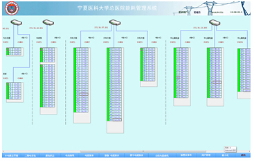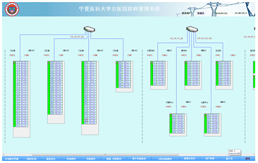 根據用戶需求,需要對第十寧夏醫科大學附屬醫院10座樓進行組網并建立電能管理系統(主要是數據的實時監控),在控制中心值班室內設置監控平臺,對270個回路實時監測、統計、分析,以保證用電的安全、可靠和高效。
