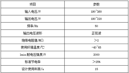 GGDZ智能照明穩(wěn)壓節(jié)電柜的技術(shù)參數(shù)如表1所示。節(jié)電柜機箱采用2mm厚冷軋鋼板,內(nèi)外表層噴塑,防護等級為IP54,溫升小于80K。此外,這一節(jié)電柜具有自動、手動旁路功能,一旦出現(xiàn)故障可以自動切換為電網(wǎng)供電,切換過程中不會產(chǎn)生瞬時滅燈現(xiàn),是實現(xiàn)城市道路照明的理想選擇。