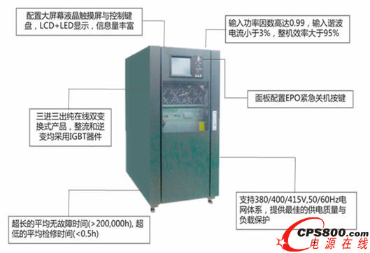 此次項目中,英威騰提供的是自主研發生產的三進三出在線式UPS主機HT33060X機型,HT33系列UPS電源是集當今 電力電子 尖端技術于一身的高端電源產品。創新的設計使得此系列產品擁有無與倫比的可靠性與高性能。極高的輸入功率因數和極低的輸入電流畸變率保證了產品的綠色與環保性,極高的整機效率保證了產品的節能性。此系列產品可以6臺機器直接并聯運行。