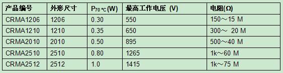 CRMA系列電阻的電阻從150Ω到75MΩ,公差只有±0.5%,溫度系數為100ppm/℃,功率等級從0.30W到1.0W。器件有涂焊膏的鎳阻擋層或涂焊膏的無磁端接,有三面卷包或只從頂部倒裝芯片的配置。